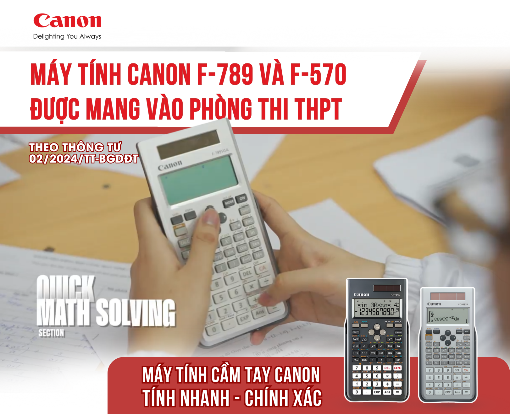 QUY ĐỊNH MỚI NHẤT VỀ MÁY TÍNH ĐƯỢC MANG VÀO PHÒNG THI VÀ ƯU THẾ CỦA DÒNG MÁY TÍNH CANON Trong bối cảnh các kỳ thi quan trọng như THPT Quốc gia và Đánh giá năng lực đang đến gần, việc lựa chọn máy tính cầm tay phù hợp quy
